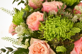 Start the summer with a mixture of peonies and lime green spiky chrysanths with eucalyptus.  A wonderful handtied to brighten anyones day.