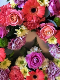 An open heart in a selection of seasonal flowers, available in any different colour combinations.